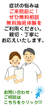 まずは!無料相談&無料施術体験を体験していただいた上、ご通院をおすすめします!