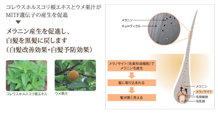 MITF遺伝子発現量コレウスホルスコリ根エキスとウメ果汁を併用することで、